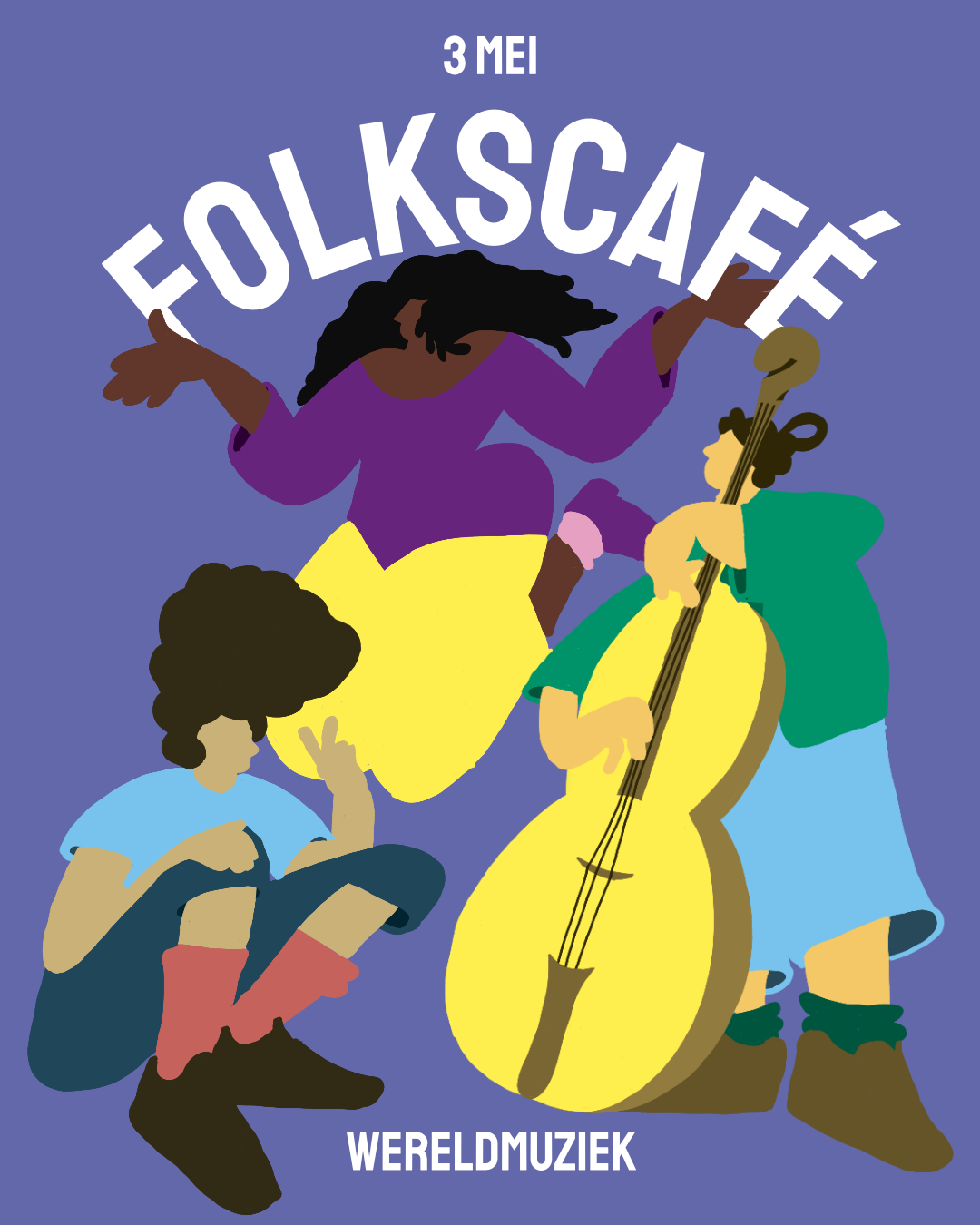 Op sneonttemiddei organisearje wy Folkscafé Wrâldmuzyk, in poadium foar lokale artiesten en muzikanten mei roots út de hiele wrâld. Ek in pear bekenden út eardere edysjes fan Folkskeuken sille opnij optreden. Sy diele har muzyk en de ferhalen dy’t dêrby hearre. Nei de optredens wurdt it publyk útnûge aktyf diel te nimmen: mei te sjongen, te dûnsjen of muzyk te meitsjen yn in iepen en ûngedwongen jamsesje/workshop.