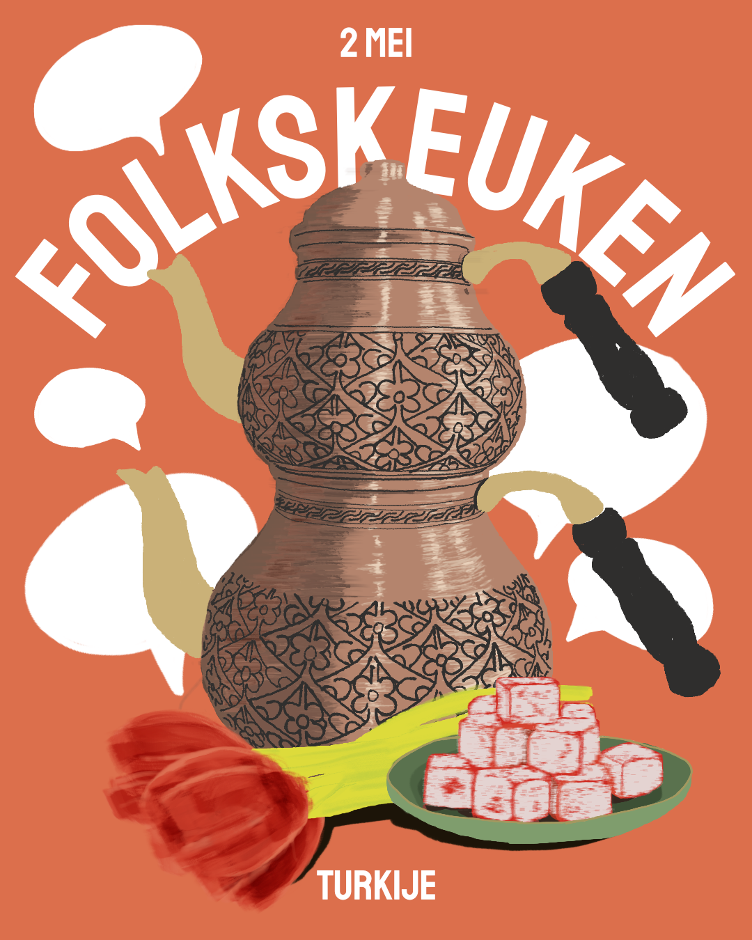 Oan in dield tafel ûntdekke wy tegearre de rike Turkske kultuer. Kom ite, kom harkje, en learje nije minsken kennen. Der binne sawol fleisgerjochten as fegetaryske en veganyske opsjes dêr’t jo út kieze kinne.
